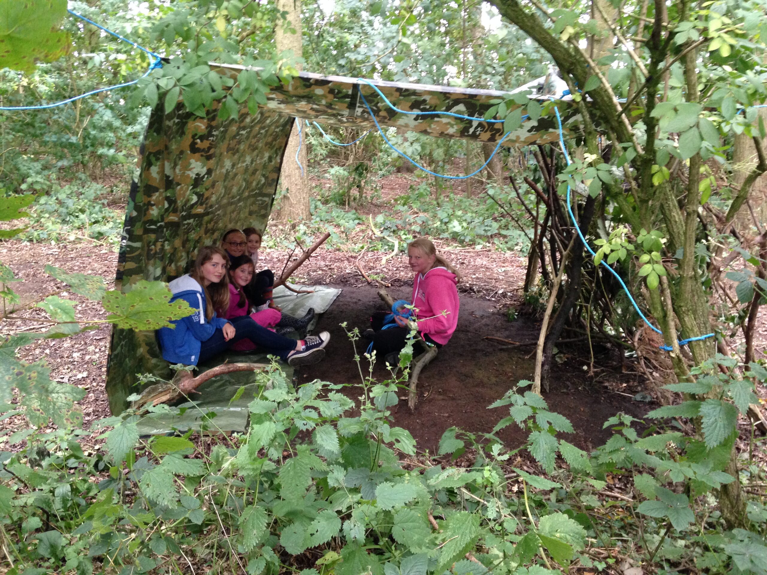 This activity takes place in an outdoor space — ideally an area with trees or woodland — where teams work together to design and build a sturdy shelter before the “storm” arrives. Using tarpaulin sheets, ropes and natural materials found in the woodland, the group must plan, construct and secure a den that will keep everyone safe and dry.