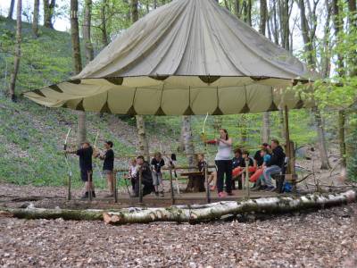 ARCHERY: Our archery range is in a tranquil setting. Under a parachute canopy which blends with the surrounding trees, and located next to a babbling brook. The session will cover an introduction, practice rounds, fun archery games and a scoring round.