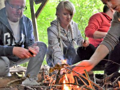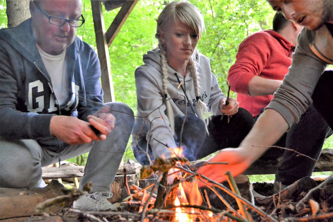 FIRE & BREAD MAKING: Based in the bushcraft den, nestled within the woodland environment this peaceful activity involves making your own campfire and freshly cooked bread. You will practice fire lighting skills using flint and steel, before making and cooking Bannock bread for you to savour around the fire.