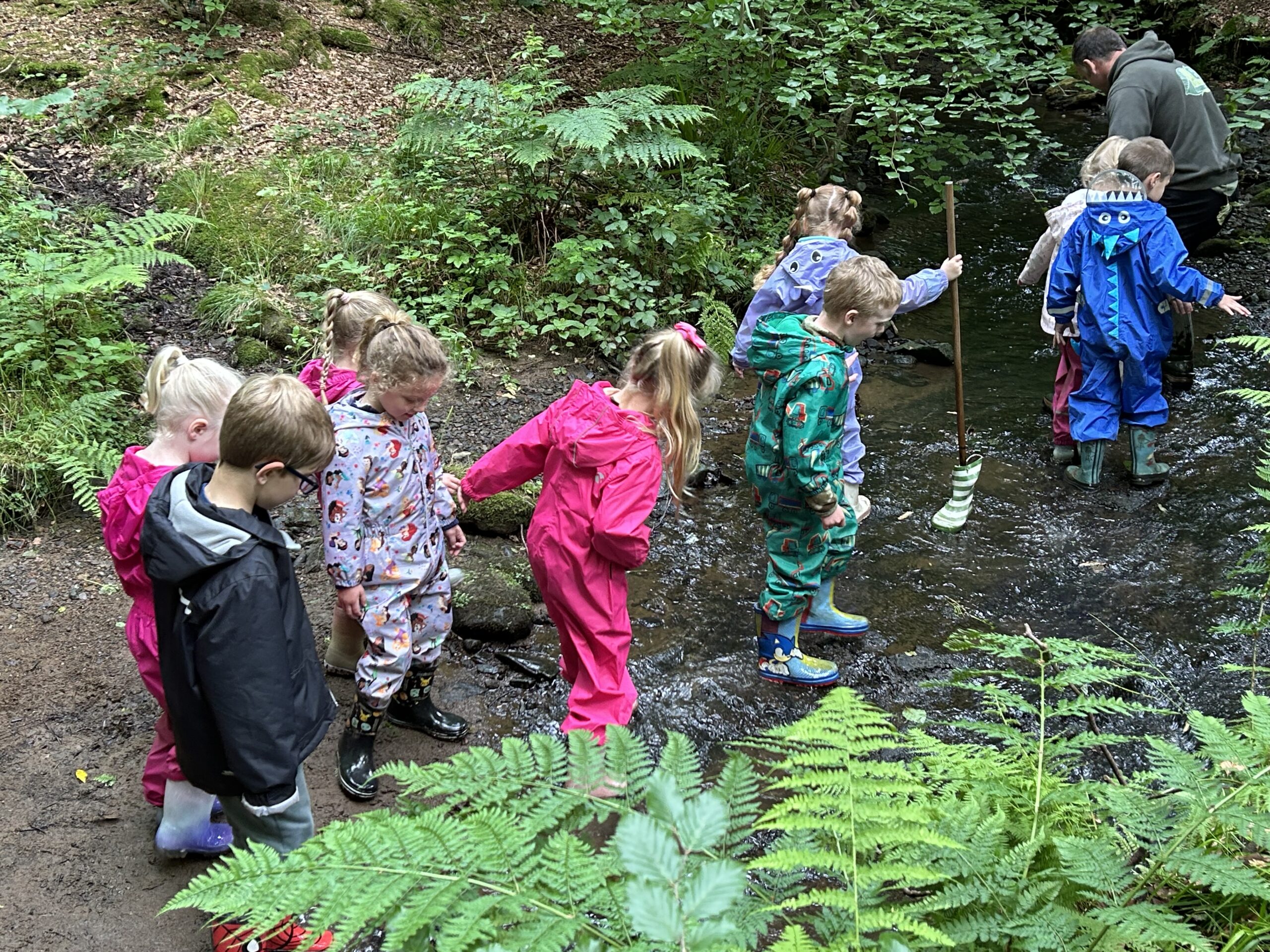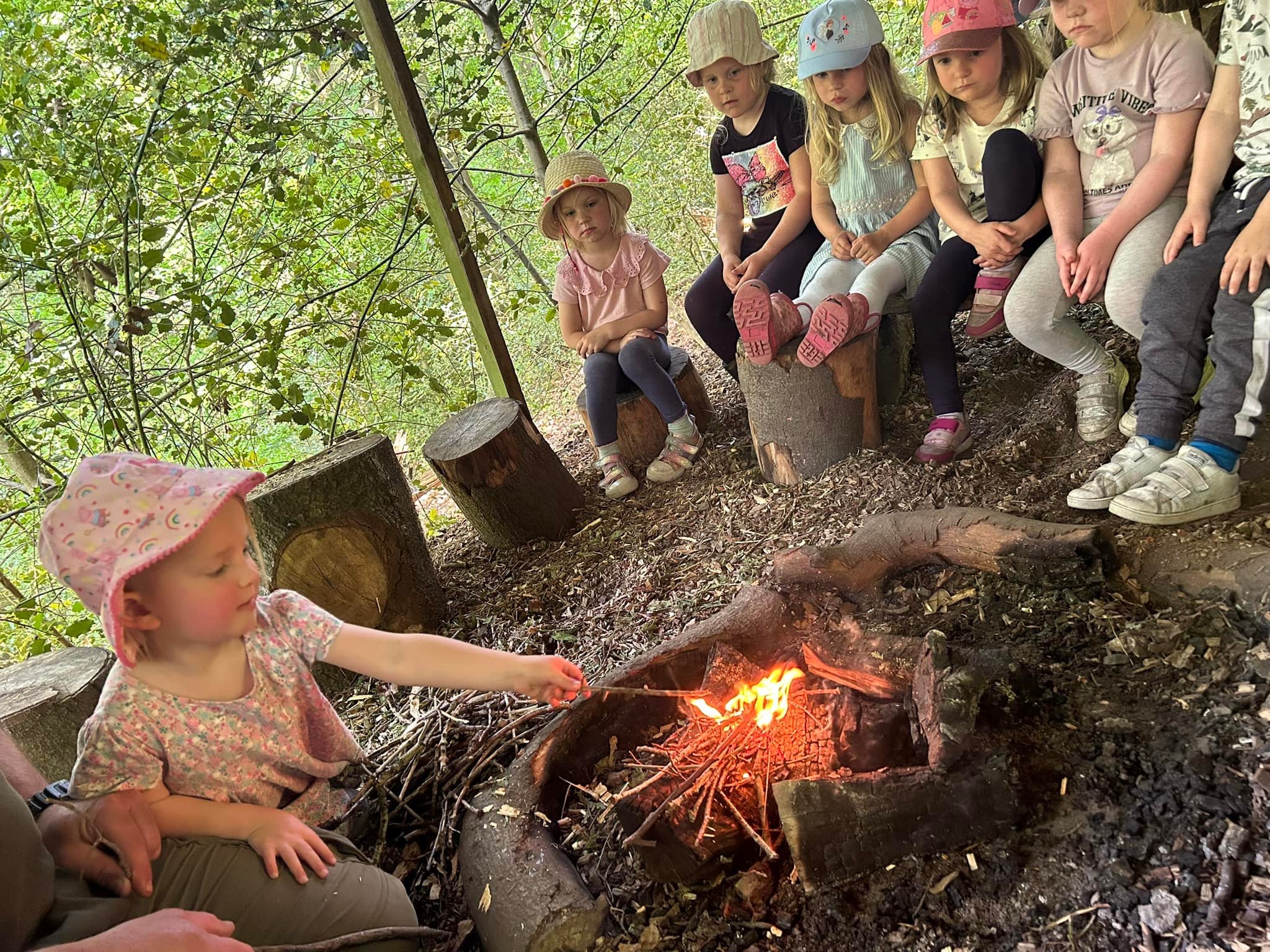 “EYFS have had a fabulous day in the great outdoors at Outdoor Elements. They have been den building, making bread around the fire and have been dipping in the stream looking for bugs.”