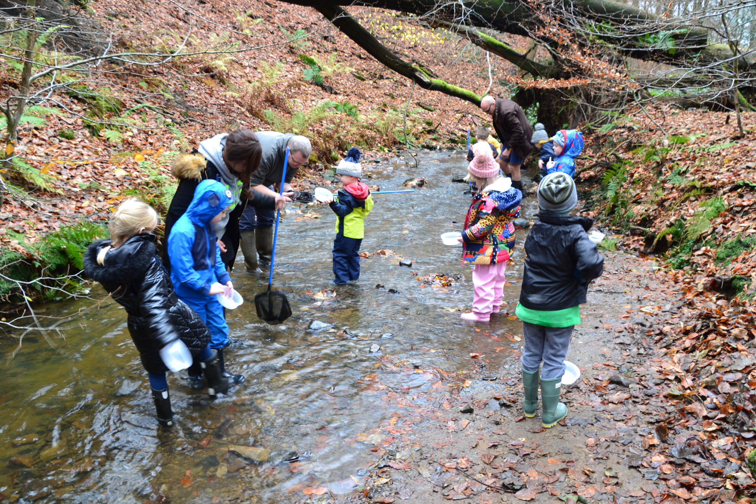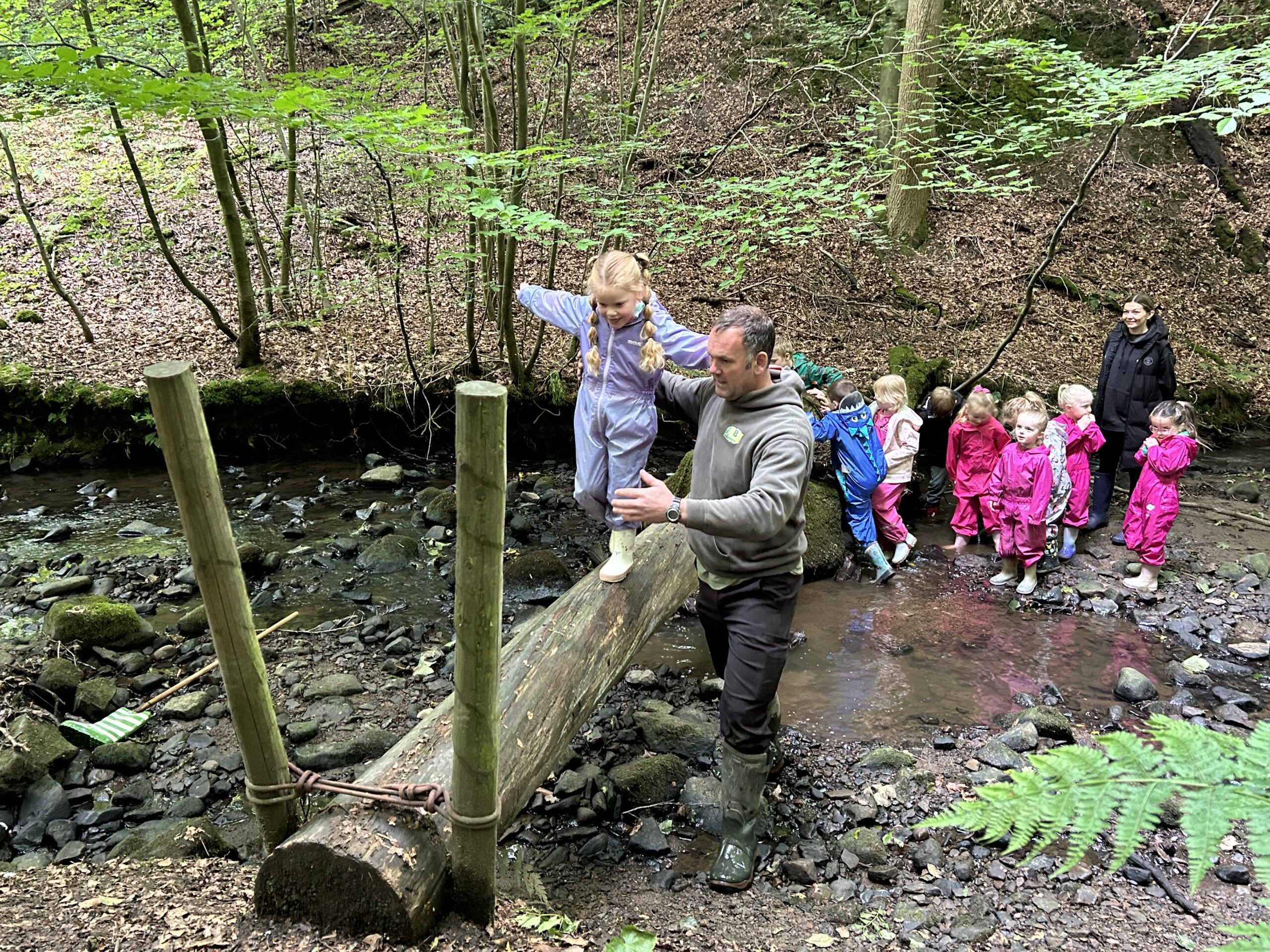 2. Welly Walk Adventure – The group will be guided on an exciting welly walk along the length of our stream. On the way, they will need to splash through shallow pools, scramble over rocks and climb over and under fallen tree branches. Obstacles such as the Gruffalo’s Cave, the Log of Doom and the Slippery Slabs make this a true adventure.