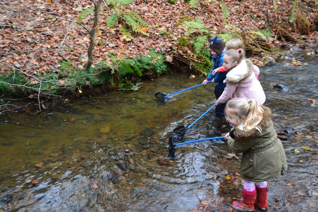 - Stream Dip: Using nets and kick sampling techniques, children uncover the hidden world of swimming bugs. Their discoveries are placed in our “bug swimming pool” for close observation. Using creatures like the Mayfly, we explore life cycles and food chains within the stream habitat. Wellington boots are essential!